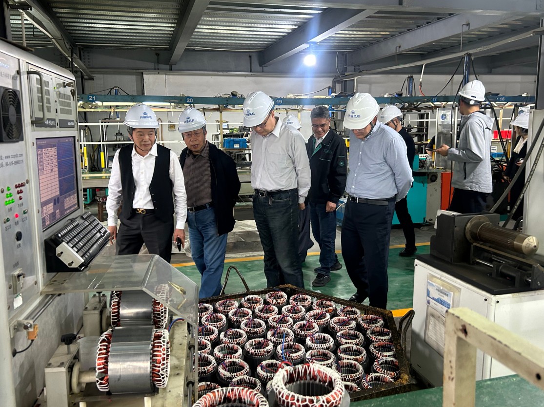 25年4 月 24 日下午,中国通用机械工业协会风机分会会长苏永强,携国内风机行业 30 多家企业负责人组成的考察团,莅临我司参观指导。我司董事长应友春、企管总监杨要军、技术总监林刚、技术总工杨洪军、销售经理石红梅等核心管理团队成员全程陪同接待。