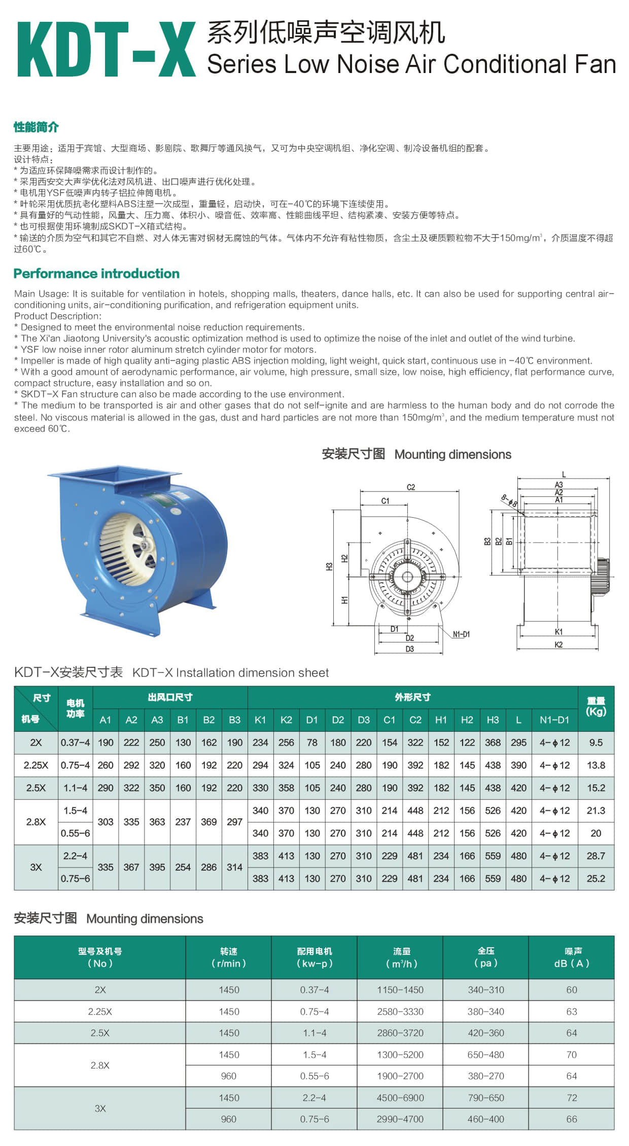 * 具有量好的气动性能,风量大、压力高、体积小、噪音低、效率高、性能曲线平坦、结构紧凑、安装方便等特点。