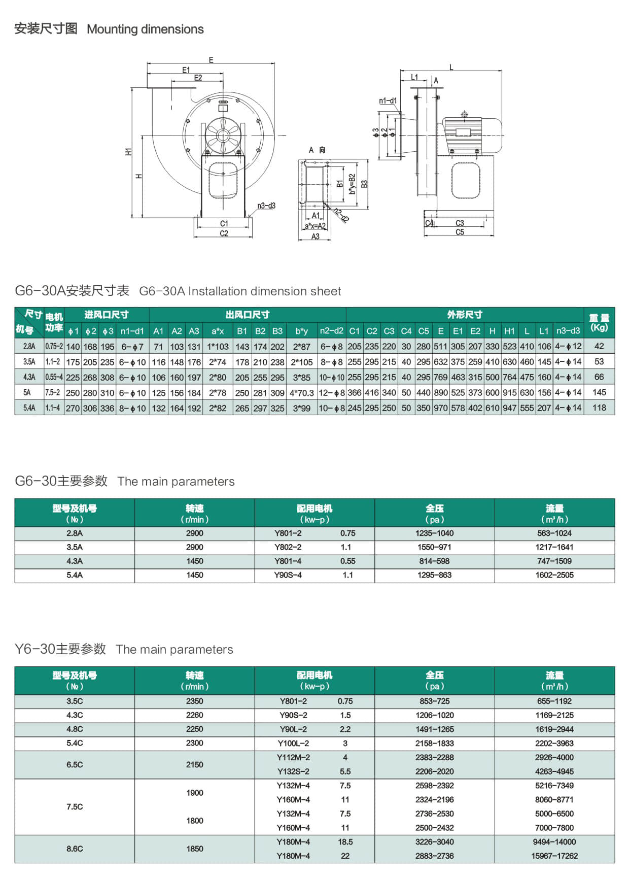 * G6-30为锅炉通风机,Y6-30为锅炉引风机。