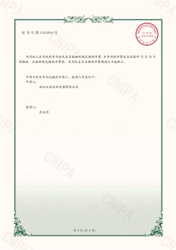 The motor has been approved by the State Aclrrinistration of detection, Improvement and innovation through the company oontirxaed Xingyi technology for one fan, fans of the series all through the national patent cerfiffication